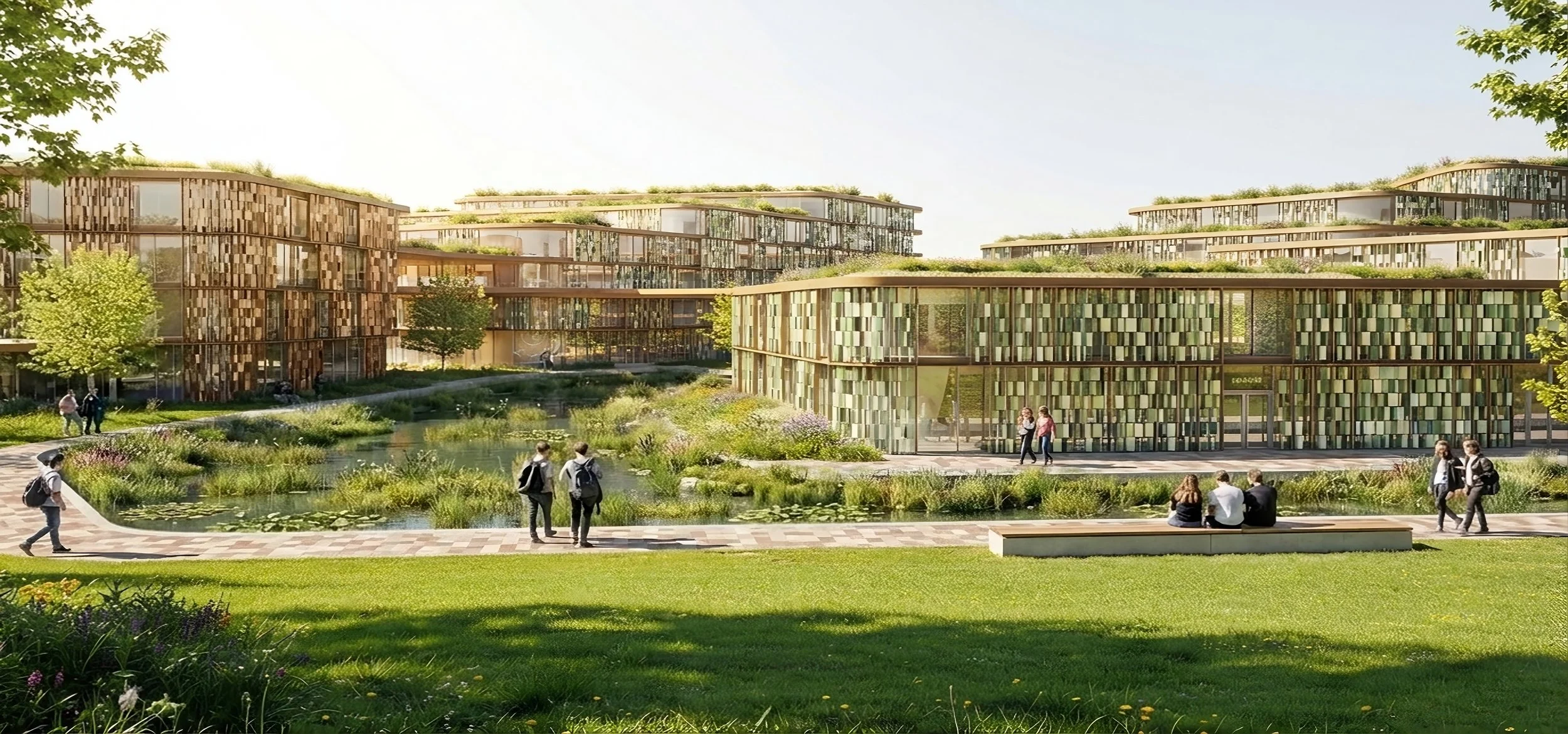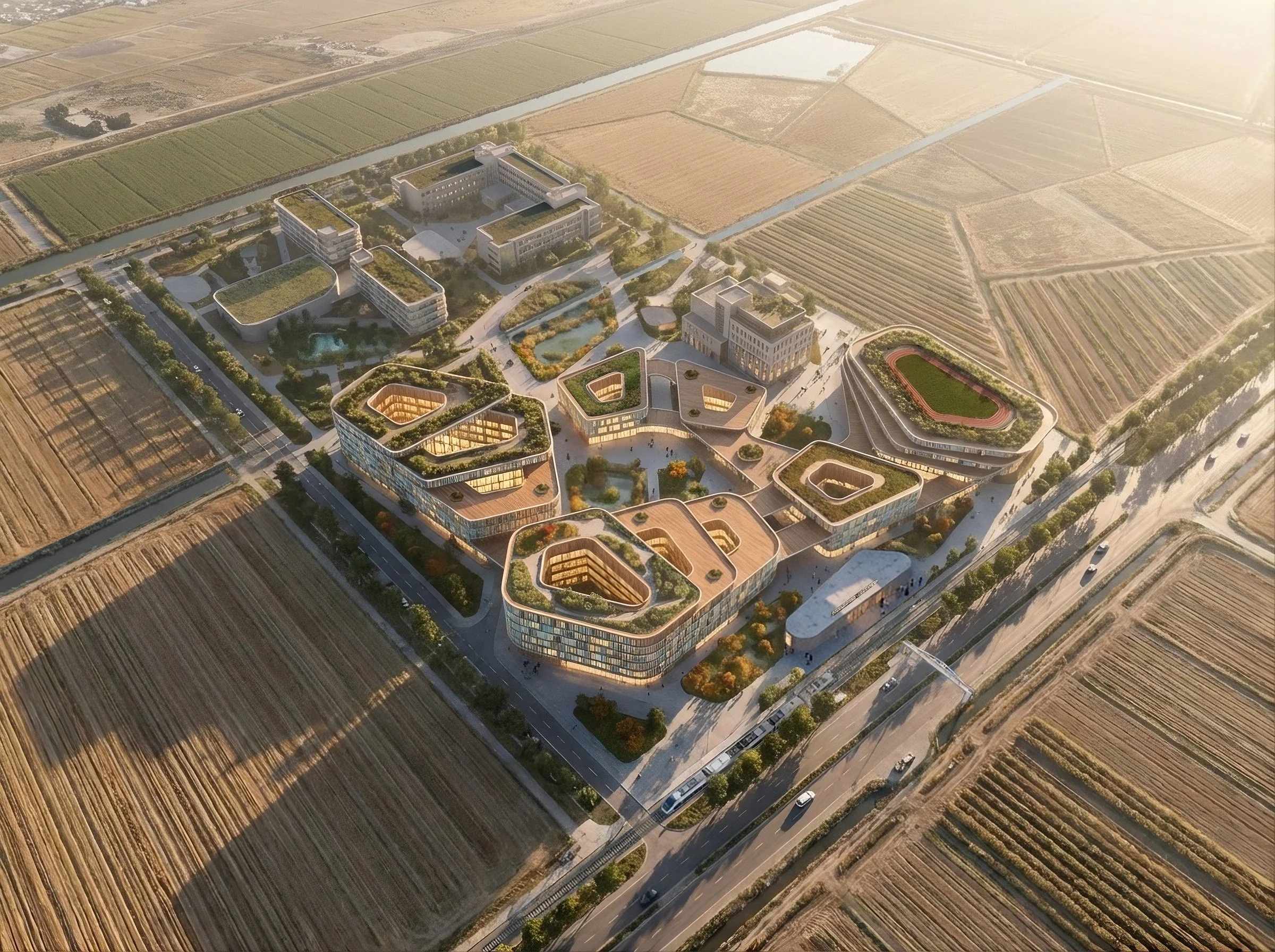 Open-air gathering areas, outdoor study zones, riparian gardens, and shaded platforms form a continuous spatial network where learning, leisure, and movement converge. The masterplan ultimately proposes a new academic landscape: a climate-adaptive, culturally layered, soft-mobility ecosystem in which architecture becomes the gentle residue of a resilient blue–green infrastructure.