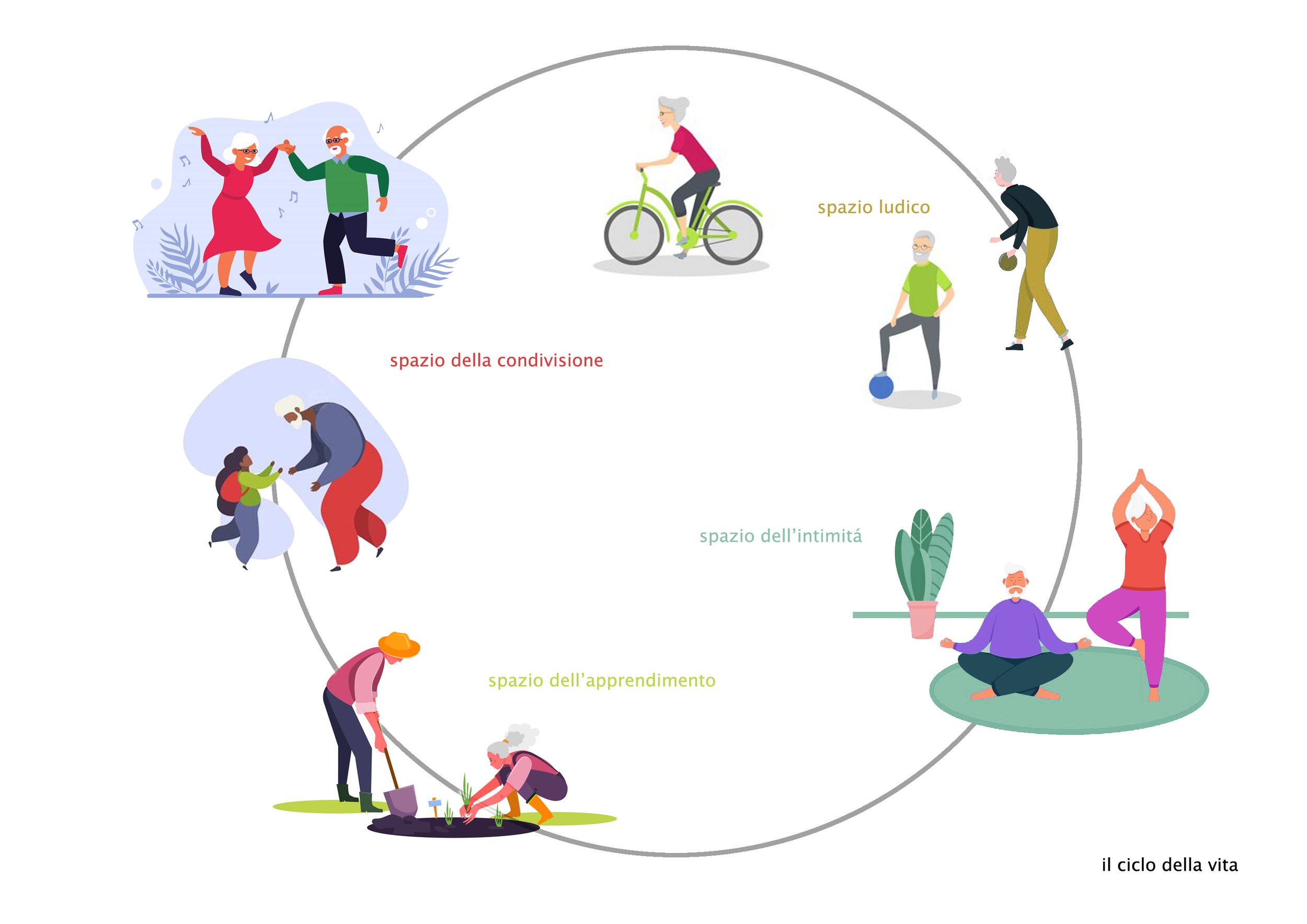 The garden works as a service of a seniors living hostel in Rome. A place for people who have decided to leave home and live the last period of their lives in relaxation and peace.
